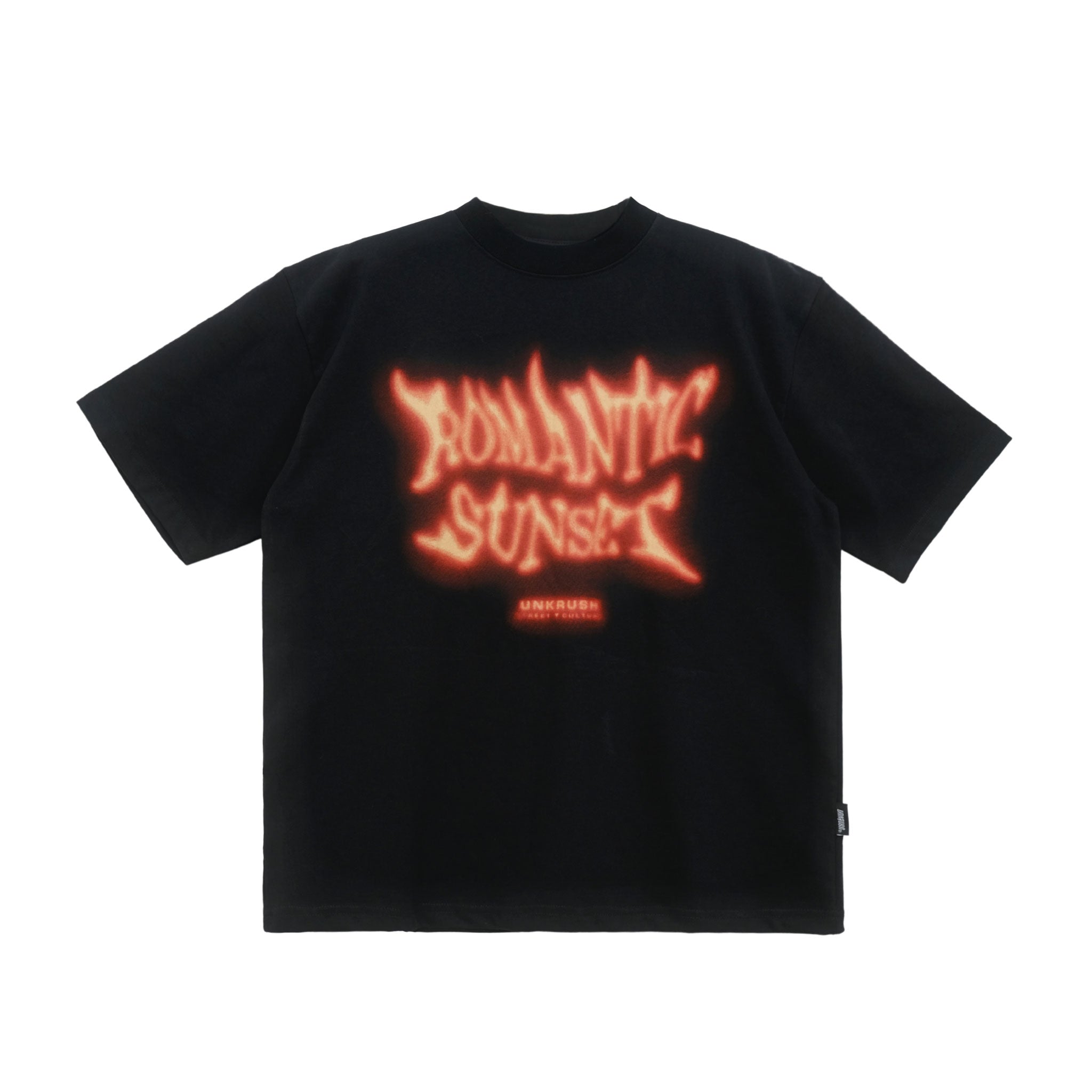 Kỹ thuật: Hình in chữ Romantic Sunset theo phong cách flame gradient.
