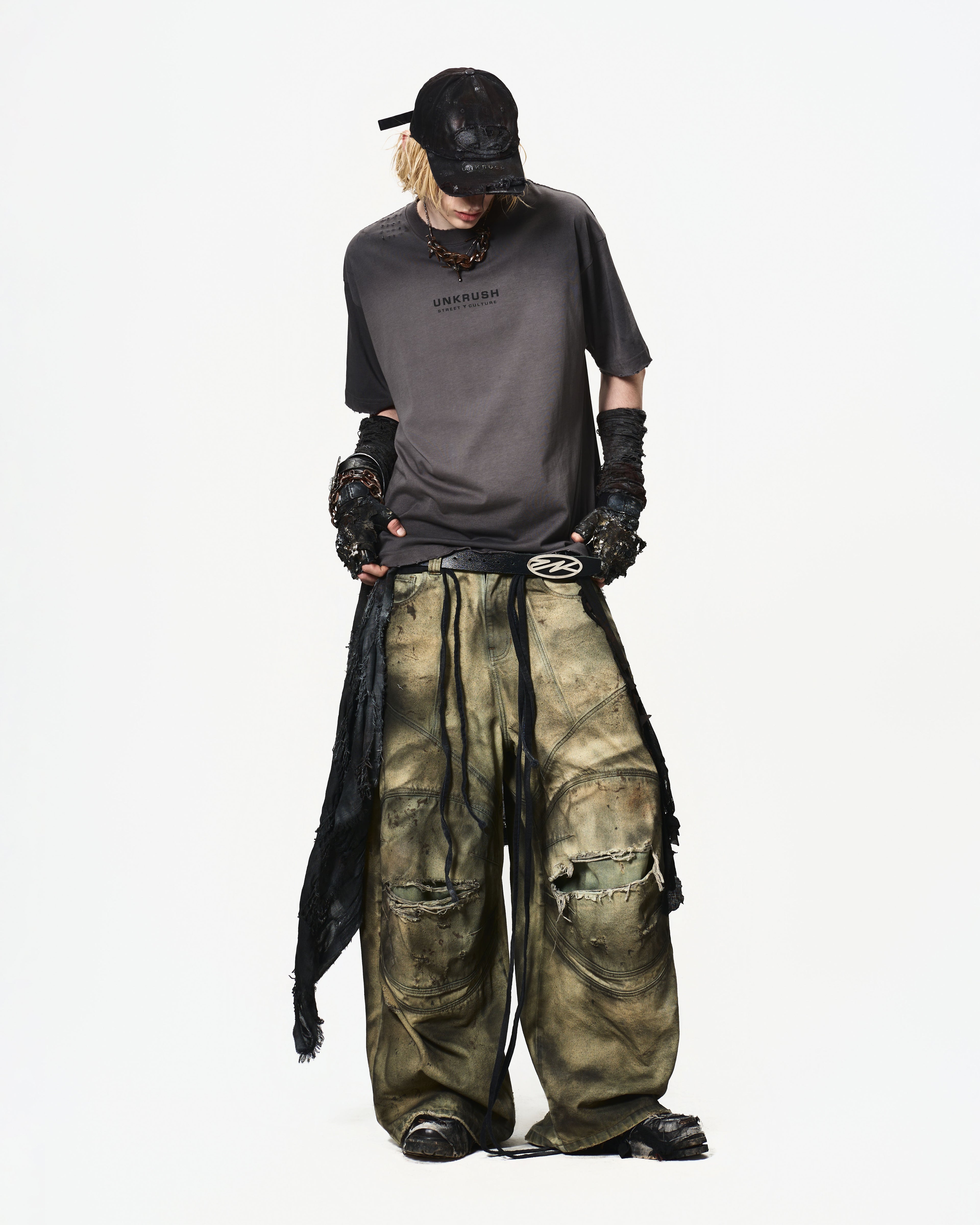Kỹ thuật: Hiệu ứng rách thủ công ở cổ áo, gấu áo và vai tạo vẻ ngoài phong trần, bụi bặm.Xuất xứ: Việt Nam.