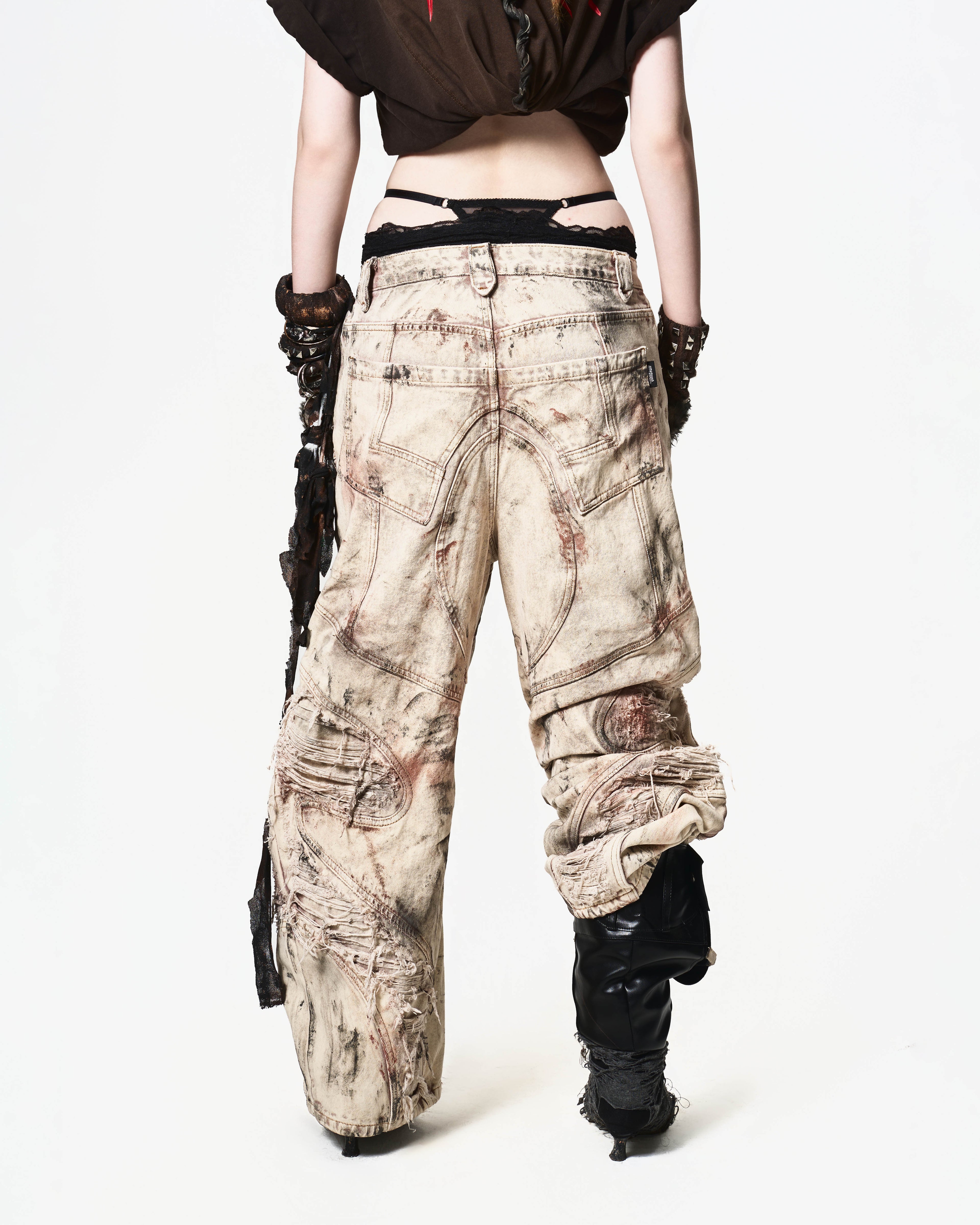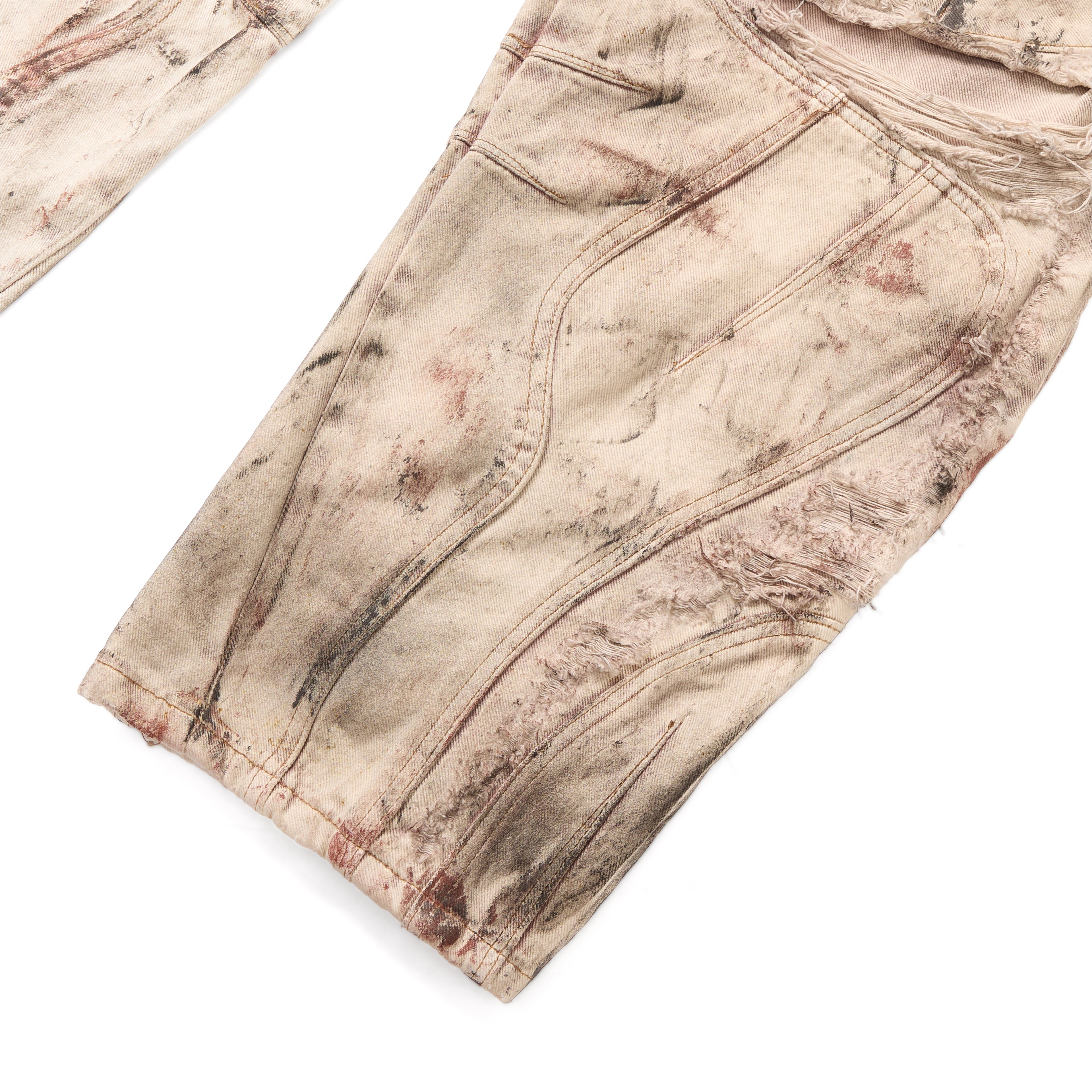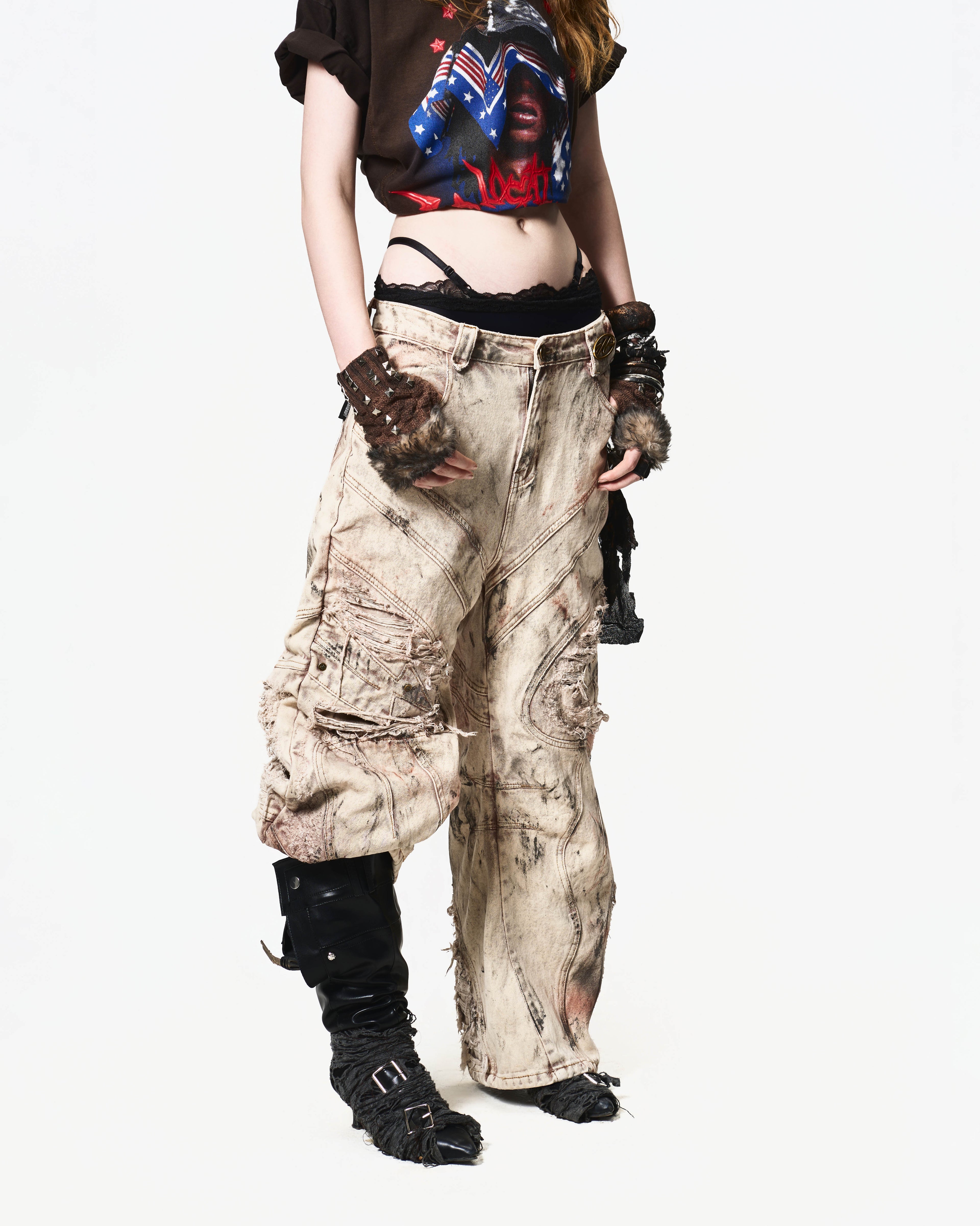 Chất liệu: Denim dày, xử lý mài và phá vải nhiều lớp